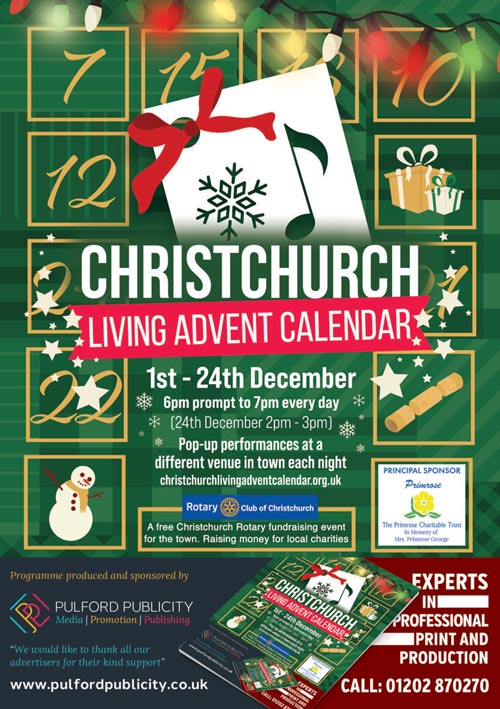 Pulford Publicity is proud to be working with the Rotary Club of Christchurch to produce the official programme of the Christchurch Living Advent Calendar.
